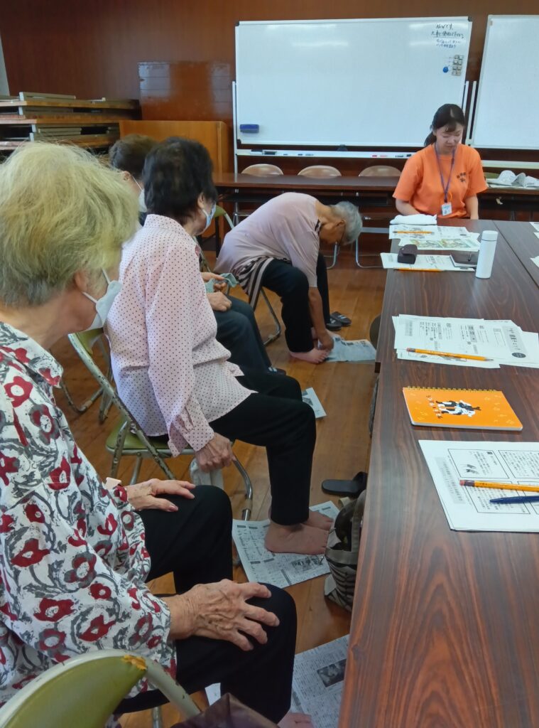 首や足指のストレッチや、足指で新聞を丸められるかにもチャレンジしました!